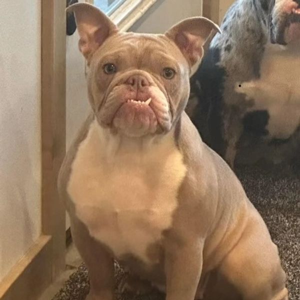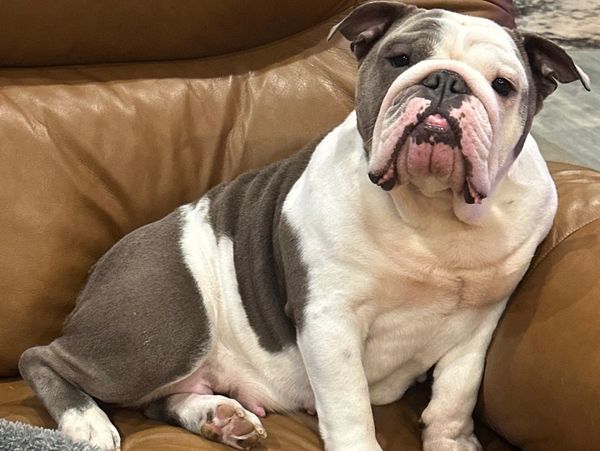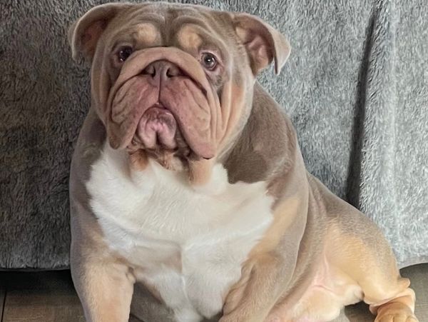 Nova is our 1-year-old AKC English Bulldog, sporting a gorgeous lilac and white coat. She’s the daughter of Becca and Julius, a Tri-Color Lilac Bulldog from the UK. Nova carries the seal and fawn genes from her mother and will be ready to breed shortly after turning 2 in April 2025. This sassy yet sweet girl loves being the center of attention and adores snuggles.