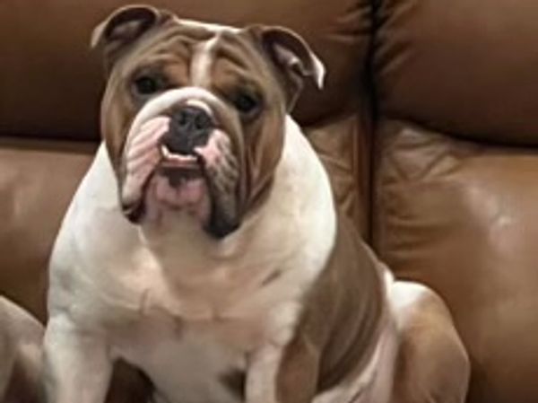 Becca is our 4-year-old AKC Blue Seal Piebald English Bulldog. We adopted her and her brother Tank from a breeder in Wyoming. Becca has had three previous litters, producing 9 puppies in her first and third and 8 in her second. With Becca's third litter in August of 2024 we have chosen to retire her. She has proven to be an outstanding mother and will remain living out her life with us as our loving pet. Becca's mother is a Blue Seal, and her father is a Red and White with black tips. As the matriarch of our home, Becca is a sweet and nurturing presence.